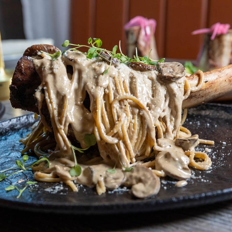 Braised short rib, tossed in a cream mushrooms sauce and topped with grana padano cheese